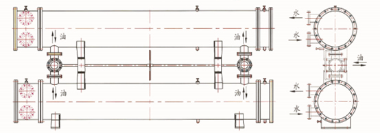 管殼式換熱器采用雙聯結構,由兩只相同面積的冷油器和三通閥裝置構成,一只工作,一只備用,每個冷卻器能承擔整個系統的冷卻負荷,管板一頭固定,一頭浮動、可拆卸的管束和水室箱蓋,便于運行過程中清洗、檢查和維修。管殼式換熱器材質,根據使用場所、水系統條件可有多種選擇。